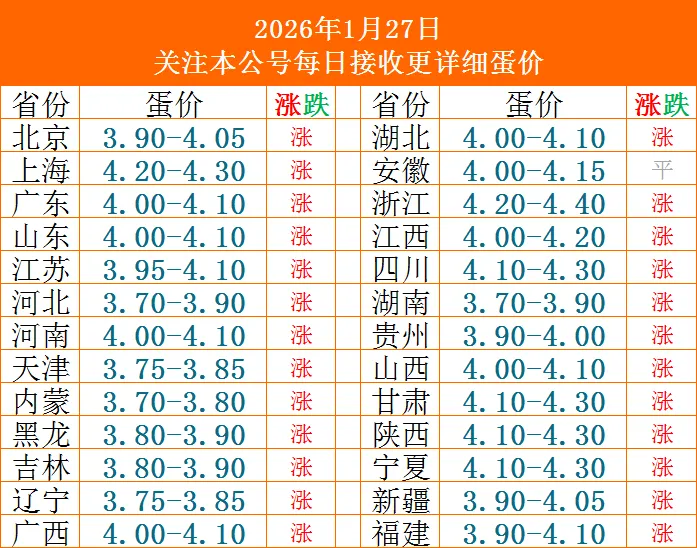 今日鸡蛋价格(2026年1月27日大涨)蛋价未来10天预兆