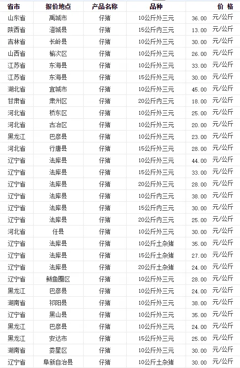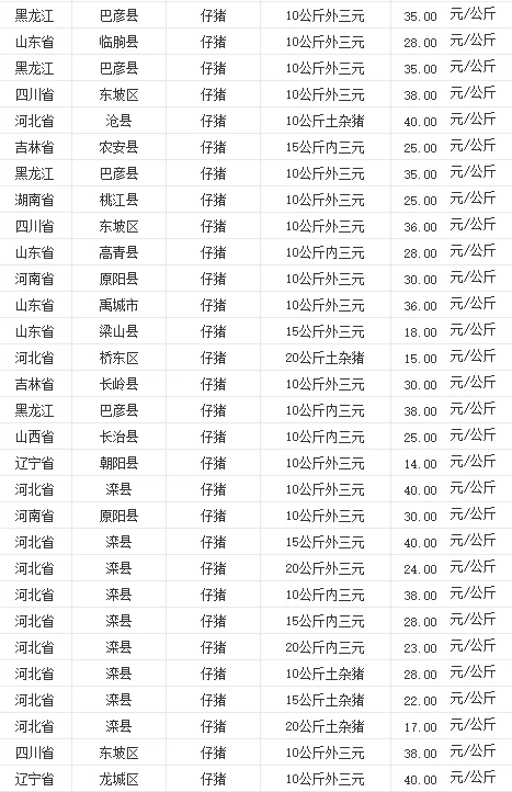 全国各地区今日猪价