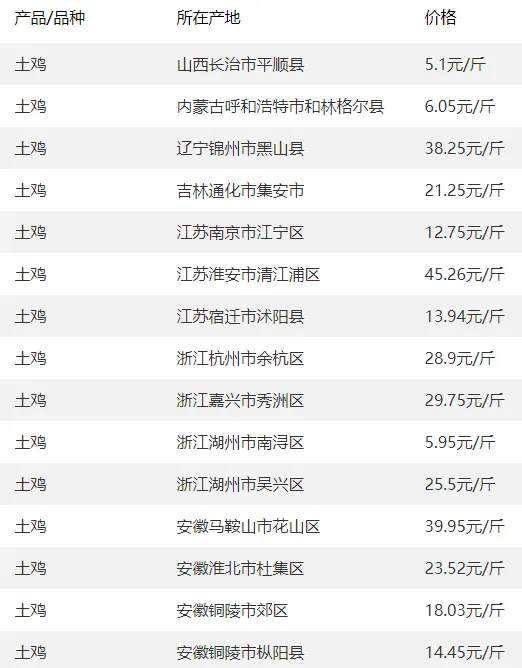土鸡价格