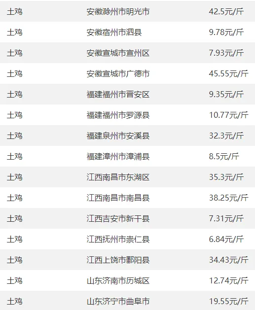 肉鸡、土鸡、鸡苗、鸡蛋等今日报价