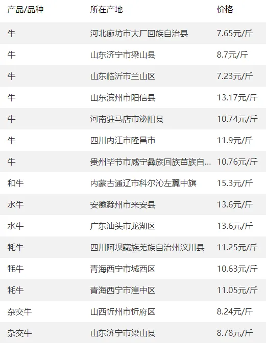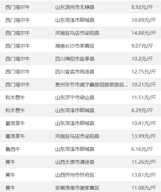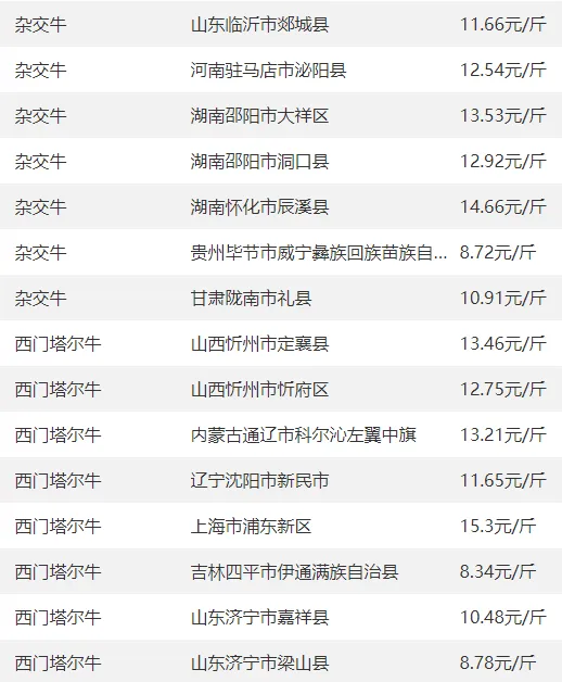全国部分地区牛价