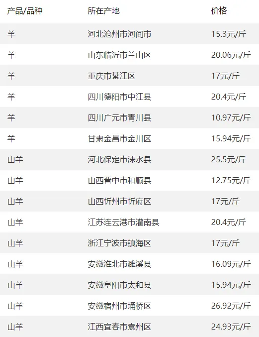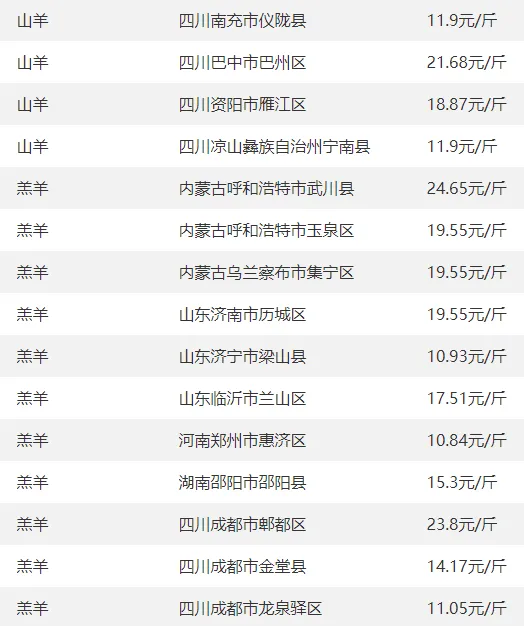 5. 北京新发地羊肉56元/公斤、岳各庄57元/公斤,全国羊肉价格整体高位平稳,部分区域飘红。