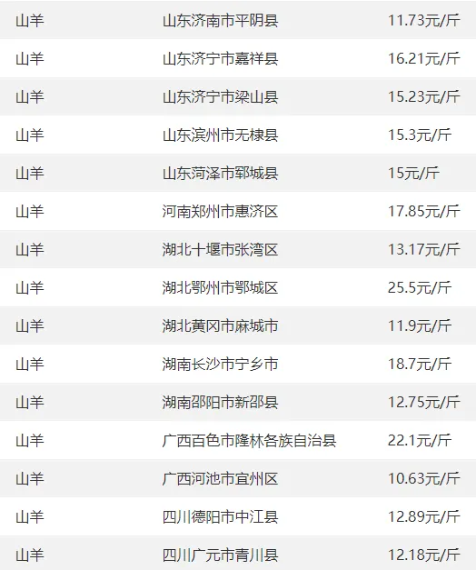 全国部分地区羊价