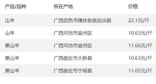广西部分地区羊价