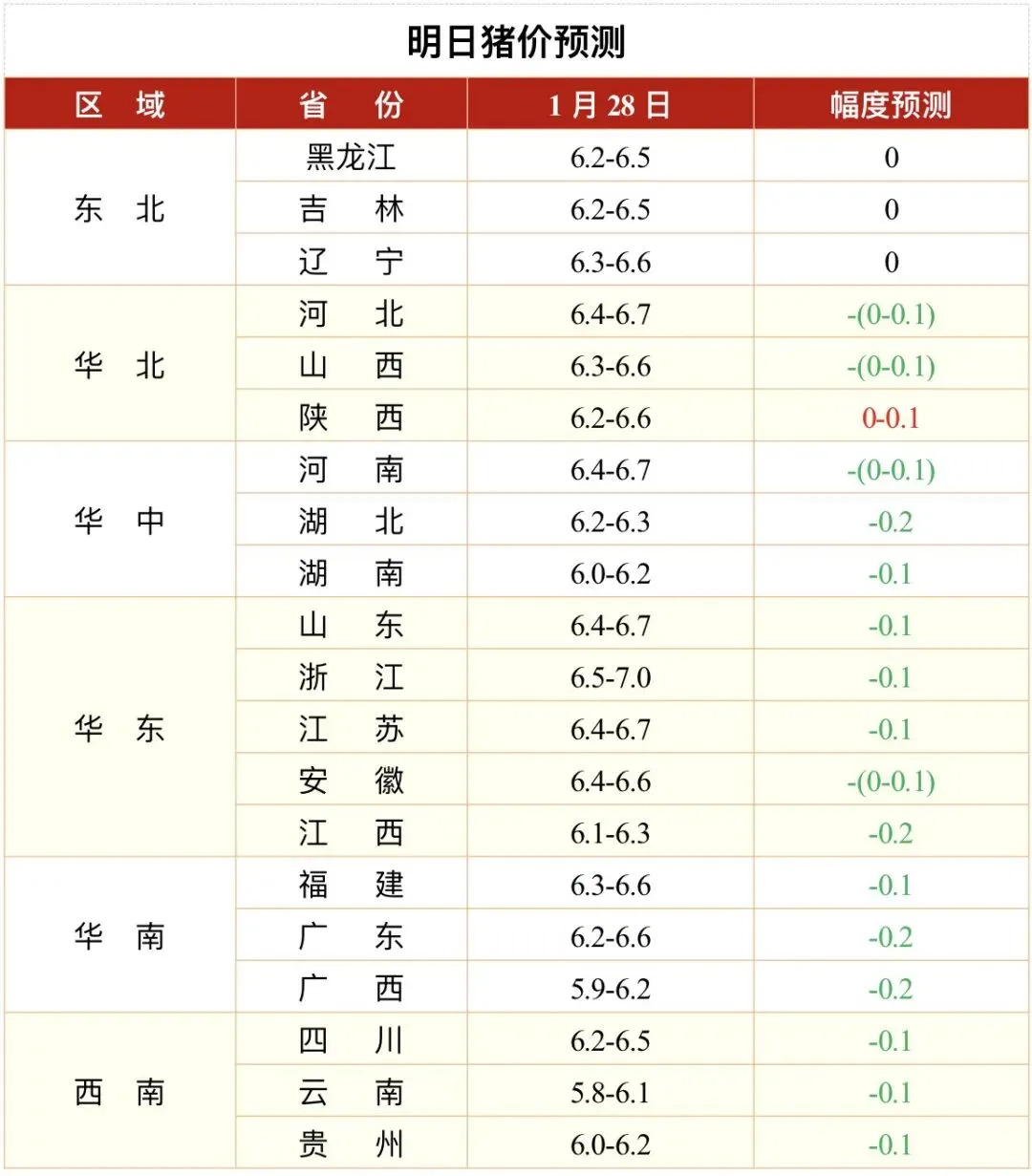 【明日猪价】1月28日猪价南方下滑、北方跌幅收窄 养羊网 2026-01-28 【明日猪价】1月28日猪价南方下滑、北方跌幅收窄快来添加集团专属客服猪幺妹!长按识别二维码联系我们 养羊网 2026-01-28 上一篇:2026/1/28猪价参考及养殖知识(断奶仔猪为何腹泻难养,掌握好规律就可轻松过渡!) 下一篇:1月28日猪价|速看!(仅供参考,关注转发!) 您可能还会对下面的文章感兴趣111: 相关文章 近期价格更新!!! 爱吃的朋友们,大家好。锡盟牛羊肉 【明日猪价】10月24日全国猪价北跌南稳! 定西大约克种公猪