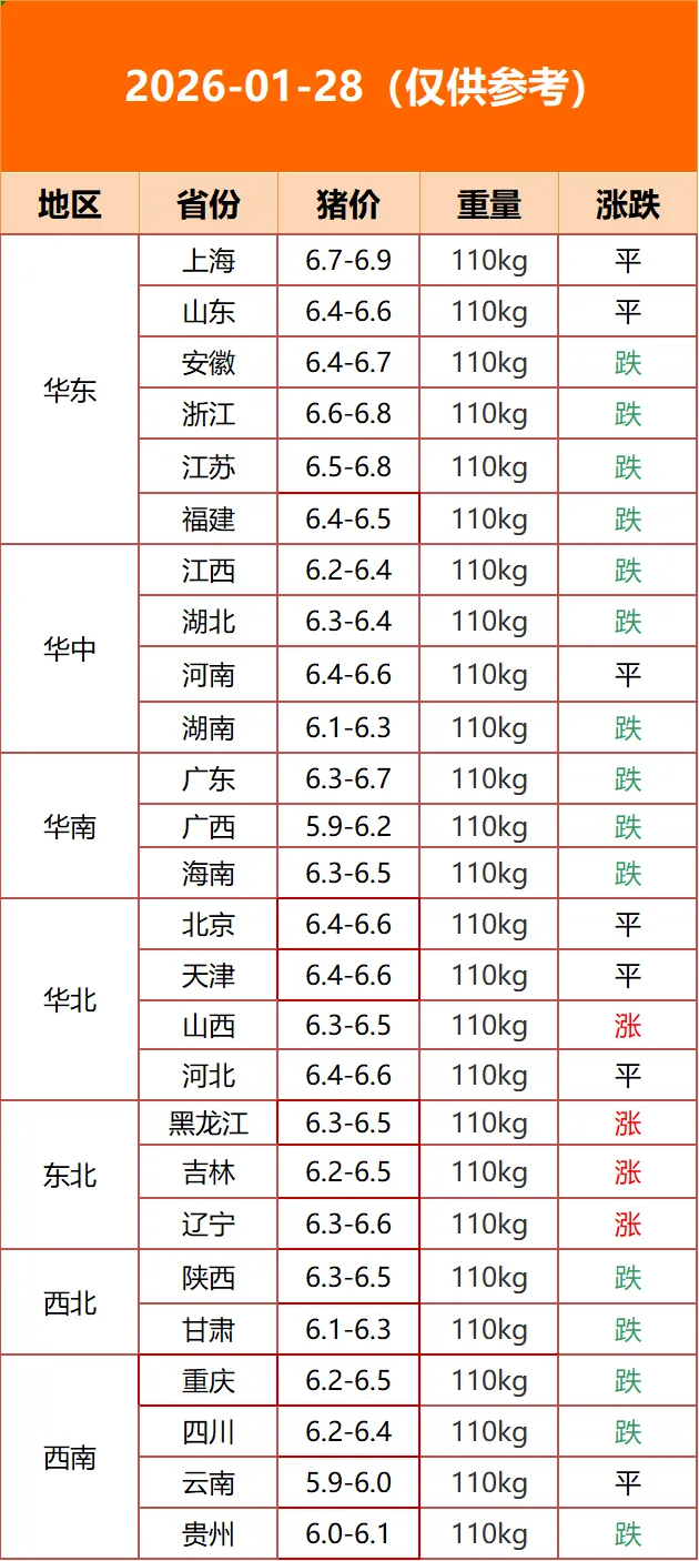 猪价有变 多地调整【2026 / 1 / 28 周三】 养羊网 2026-01-28 猪价有变 多地调整【2026 / 1 / 28 周三】股票简称:大禹生物 ? ?股票代码:920970扫描二维码关注我们做全球最好葡萄糖氧化酶更多精彩内容回复关键词 养羊网 2026-01-28 上一篇:【养猪课堂】行情早报—01月28日全国猪价!涨跌不一. 下一篇:1月28日昆明鸡蛋价格参考,大幅上涨; 您可能还会对下面的文章感兴趣111: 相关文章 苹果13pm国行 内存256G的远峰蓝。手机一直 库库库买鸡蛋 为什么有些羊肉那么便宜?! 10年来最大涨幅!鸡蛋价格再创历史新高