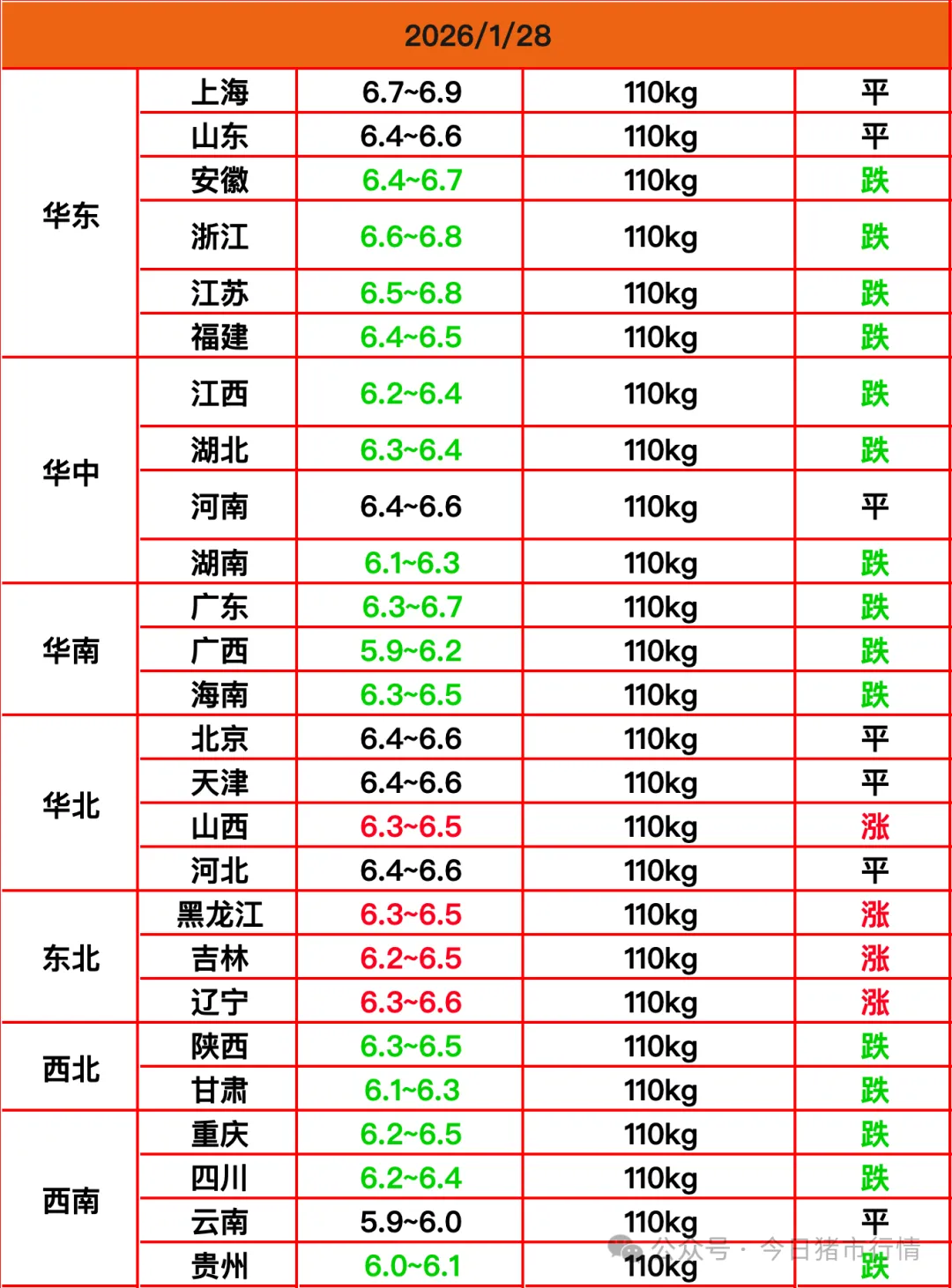 站在农民角度关注三农,农民朋友大家好,这里是今日养猪人,我是三农老道!时间过得飞快,一转眼2026年已经来到1月底,明天就是1月29日,今天老道继续为大家关注一下基层猪价方面的总体情况。根据目前基层生猪市场的最新调价情况来看,南北各地的猪价已经出现了新一轮的变化,虽然目前南方地区的猪价有所震荡回落,但是北方地区的猪价已经正式迎来了反弹上涨。客观的说,在未来一段时间,基层猪价很有可能还会继续迎来利好变化,因为生猪的调出区猪价开始上涨,也会影响生猪主销区的猪价行情。