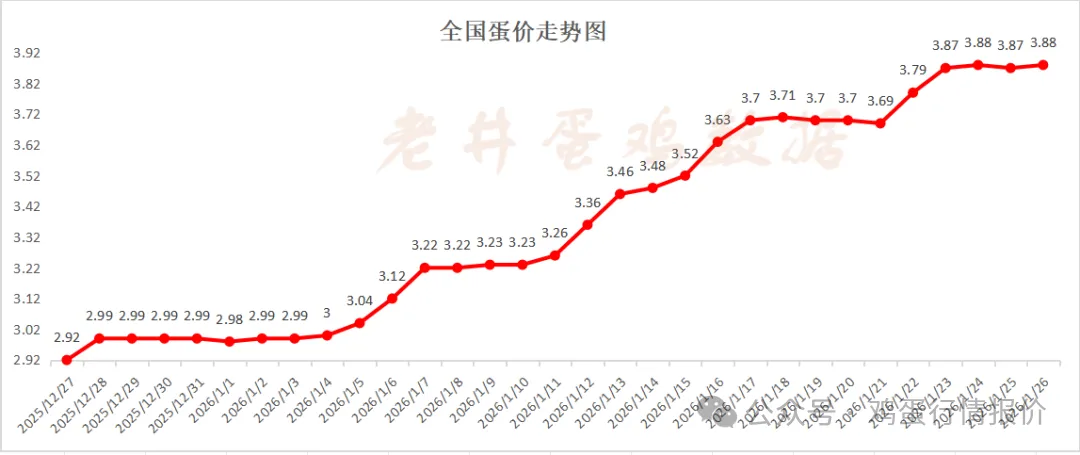 统计结果显示:昨天, 鸡蛋全国均价3.88元/斤,较前日增0.01元/斤,增幅0.26%!