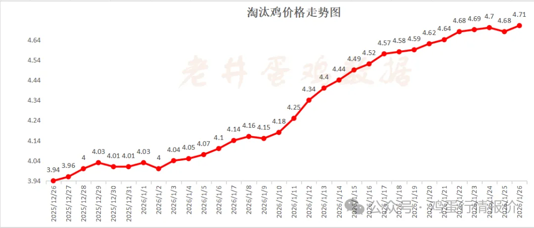 昨日,淘汰鸡均价4.71元/斤,较前日增0.03元/斤,增幅0.64%!