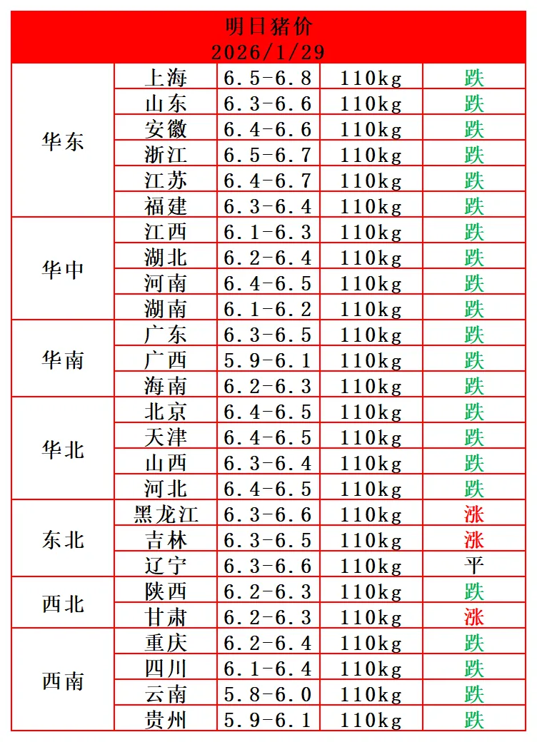 2026-1-29日猪价(明日猪价) 养羊网 2026-01-28 2026-1-29日猪价(明日猪价)立马收到明日猪价! 养羊网 2026-01-28 上一篇:2026.1.29明日最新猪价 下一篇:节前猪价走势定了!先抑后扬,小年迎高点 您可能还会对下面的文章感兴趣111: 相关文章 还得是京东啊 三毛钱一枚的鸡蛋 ? 鸡蛋终极指南|一篇看懂怎么买&怎么吃! 9.9r到手50个的鸡蛋芒,也太甜了吧 (1月16日)最新鸡蛋价格预报!更新中