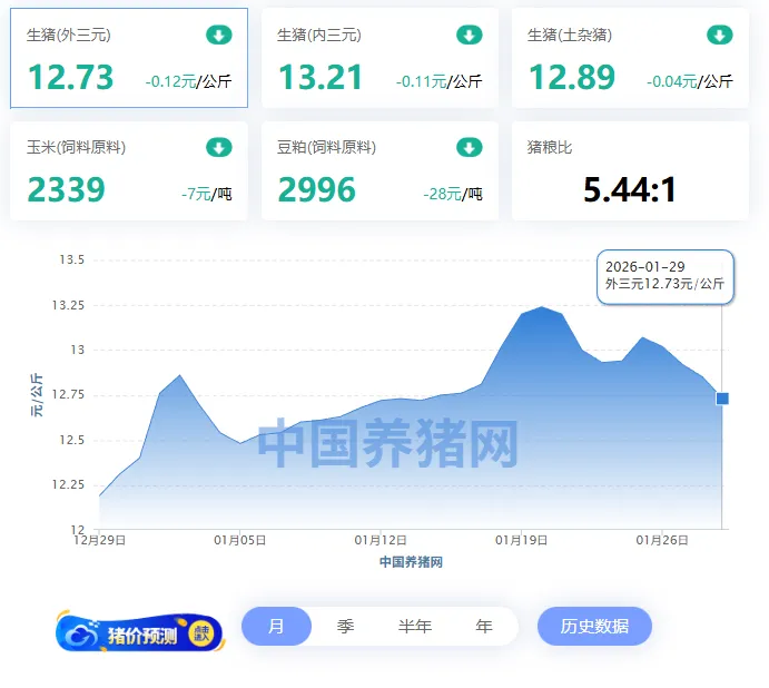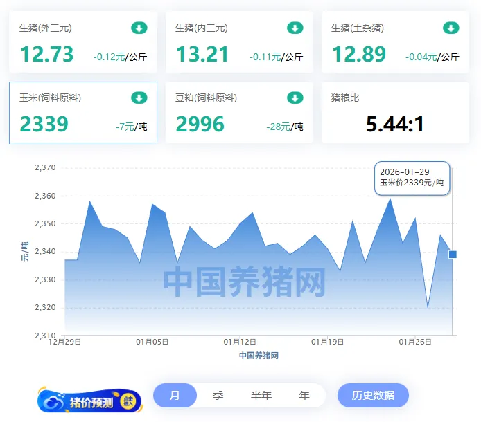 2026年01月29日-中国养猪网 全国玉米价格走势图及涨跌表