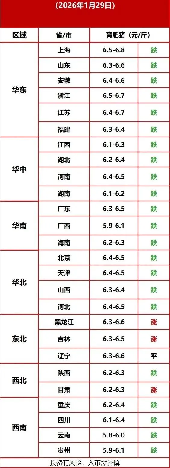 1月29日猪价依旧下调 消费疲软 等待上提 养羊网 2026-01-29 1月29日猪价依旧下调 消费疲软 等待上提每日猪价行情1月29日猪价依旧下调消费疲软 等待上提 已关注 关注 重播 分享 赞 视频详情 www.chinabreed.com中国养殖网 养羊网 2026-01-29 上一篇:1月29日猪价 | 继续走弱,东北局地反弹上涨! 下一篇:大洋路鸡蛋价格2026年 1 月 29 日报价 您可能还会对下面的文章感兴趣111: 相关文章 天天吃鸡蛋,总怕买不着好的 近期价格更新!!! 2025年4月13日全国各地生猪价格信息 鸡蛋移出我的山姆穷鬼套餐,菜场的才是yyds