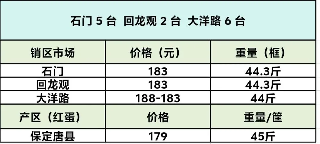大洋路鸡蛋价格2026年 1 月 29 日报价 养羊网 2026-01-29 大洋路鸡蛋价格2026年 1 月 29 日报价大洋路 6 台(含一车蛋托的)价格 188-183 元,剩蛋托的还未卸完,其余没货了,明天回 3-4 台附近。 养羊网 2026-01-29 上一篇:1月29日猪价依旧下调 消费疲软 等待上提 下一篇:元月29日各地鸡蛋价格(涨) 您可能还会对下面的文章感兴趣111: 相关文章 近期价格更新!!! 农场、养殖、种植、畜牧、牛羊肉logo 我被云南盛鑫农业有限公司套路43500元 小山羊