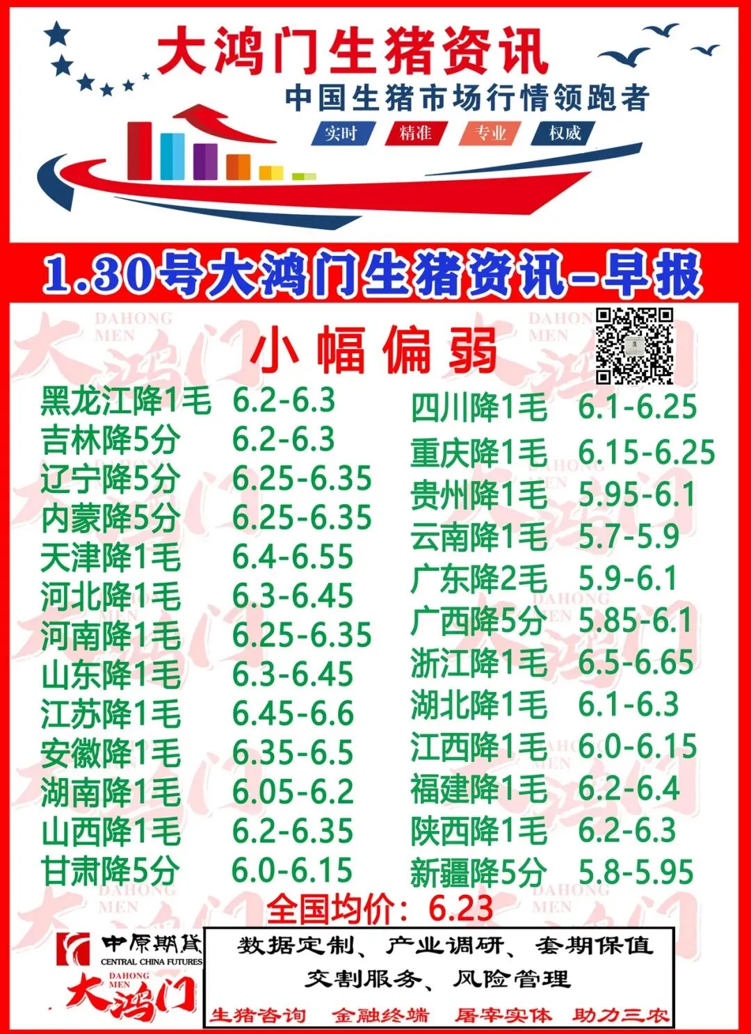 2026年01月29日广东区二元杂接货价下调为6元/斤 三元杂接货价下调为6.3元/斤 四元杂接货价下调为6.3元/斤。