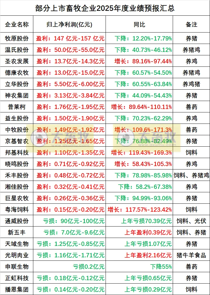 3、23家上市畜牧企业2025年业绩预告