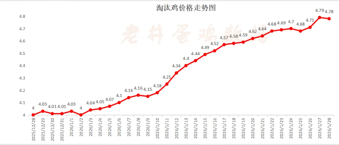 昨日,淘汰鸡均价4.78元/斤,较前日减0.01元/斤,减幅0.21%!