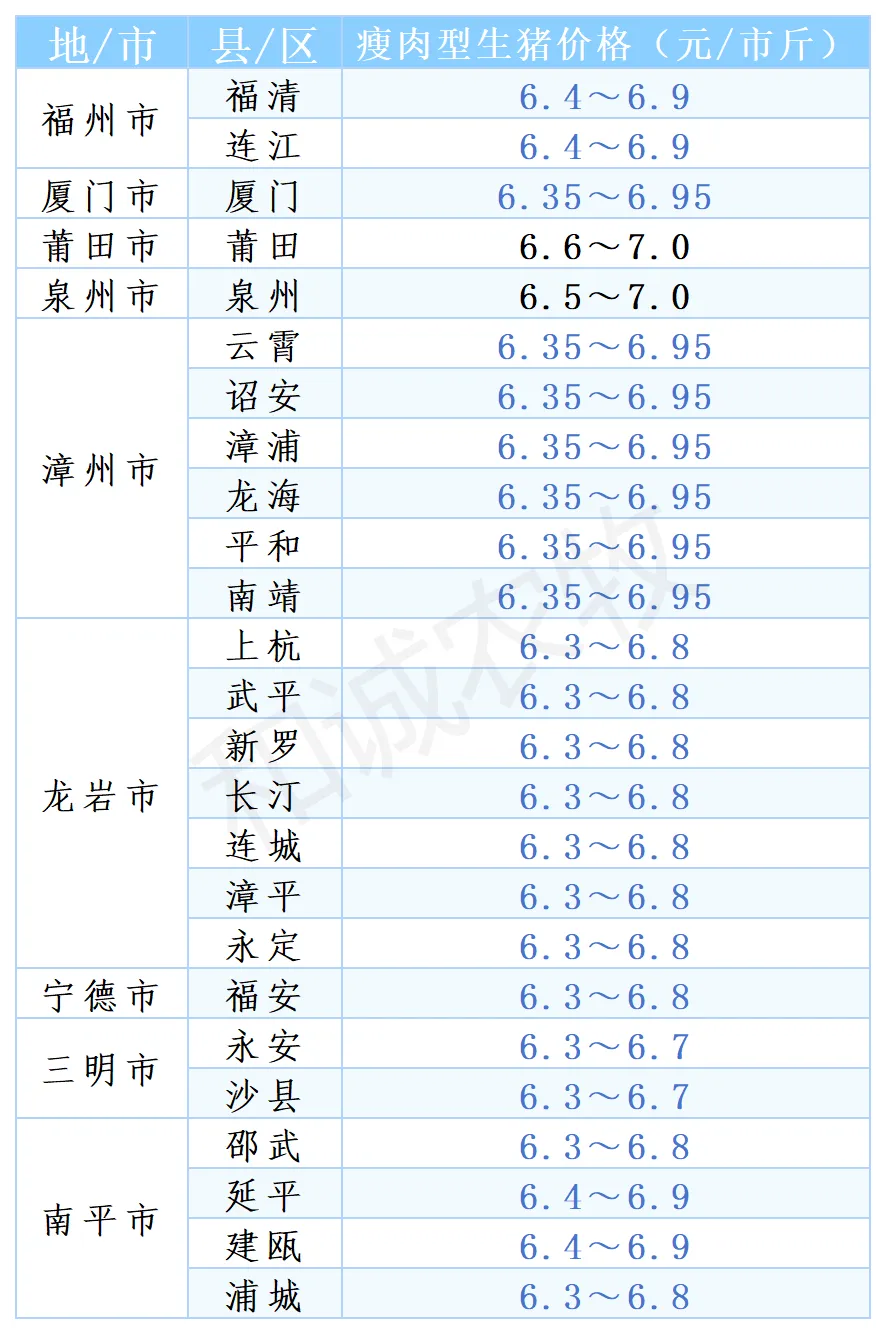 【猪价】2026.01.30福建各地区每日最新猪价