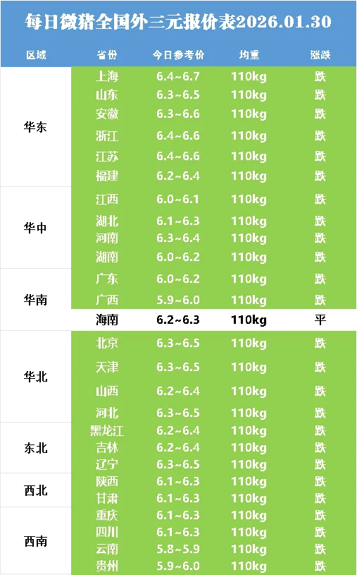 明日最新猪价2026.01.30点击蓝字关注 猪价不错过