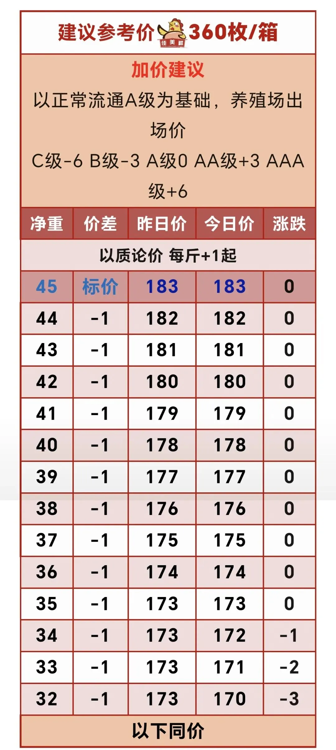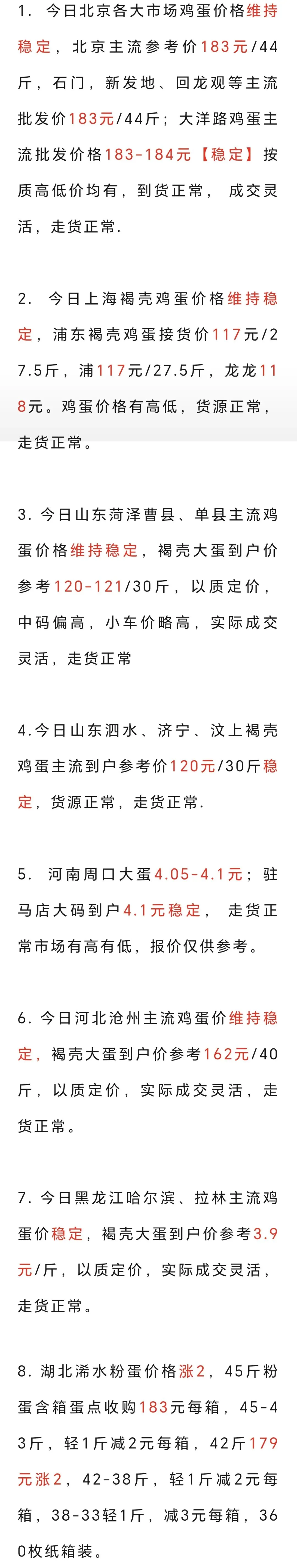 元月30日各地鸡蛋价格(涨) 养羊网 2026-01-30 元月30日各地鸡蛋价格(涨) 养羊网 2026-01-30 上一篇:2026.01.30-今日猪价 下一篇:2026年1月30日全国鸡蛋价格 您可能还会对下面的文章感兴趣111: 相关文章 一张图了解三大猪企 2025年4月13日全国各地生猪价格信息 不懂就问,东北小菜馆这菜价什么水平 创业失败,负债60个,送外卖搞钱