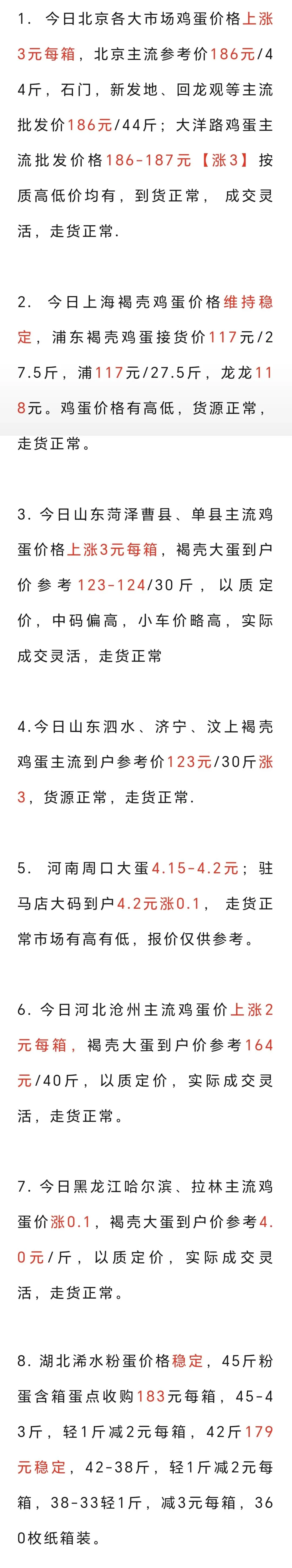 元月31日各地鸡蛋价格(涨) 养羊网 2026-01-31 元月31日各地鸡蛋价格(涨) 养羊网 2026-01-31 上一篇:2026.1.31 猪价 下一篇:【生猪月报】供强需弱格局延续 猪价承压运行 您可能还会对下面的文章感兴趣111: 相关文章 一个身价过亿的大佬告诉我,越low的生意越赚 鸡蛋价格疯涨,美国中产日子雪上加霜 鲸探,万里长城,大肉,能买一整头猪了 四川容县黄万成养猪种生态柑橘效益高