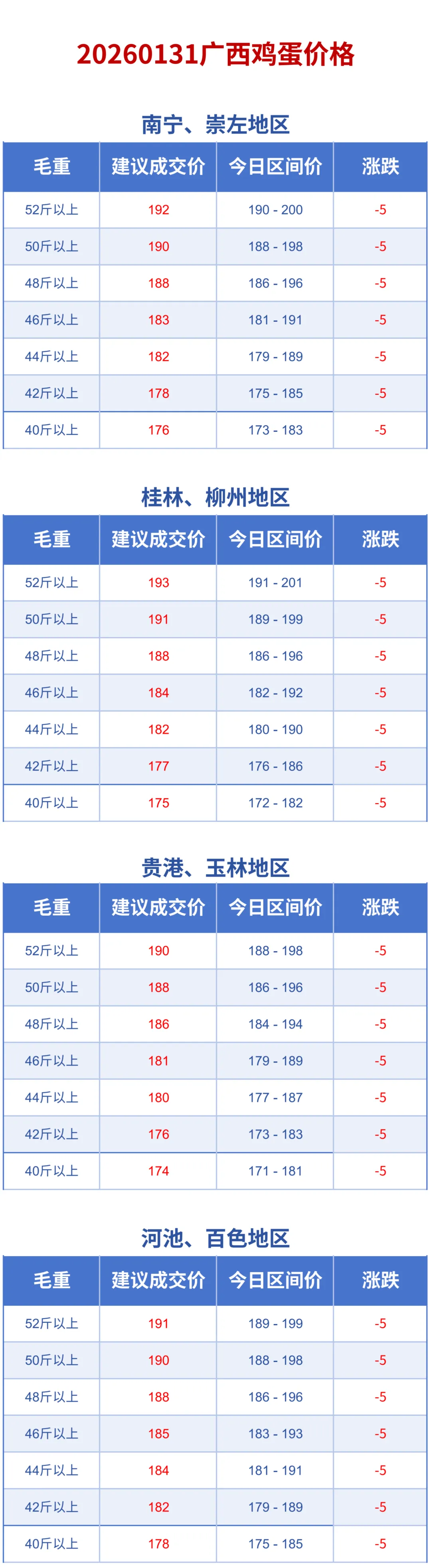 说明 | 广西鸡蛋价格发布,是为深入落实农业农村部《“百场(厂)千村万户”畜禽生产和效益定点监测信息采集》工作要求的基础上,健全广西蛋禽产业数据监测体系,提供实时精准的鸡蛋价格锚点,推动行业形成透明规范、公允合理的价格体系,助力我区蛋禽产业高质量发展。