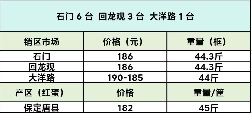 大洋路鸡蛋价格2026年 1 月 31 日报价 养羊网 2026-01-31 大洋路鸡蛋价格2026年 1 月 31 日报价大洋路 1 台,价格 190-187 元,少数 185 元, 到货少,没剩车,明天回车预计 4-5 台附近。 养羊网 2026-01-31 上一篇:今日猪价|生猪综合价格2026.1.31 下一篇:一夜升温!猪价又要涨了!附: 26年2月1日 全国猪价 您可能还会对下面的文章感兴趣111: 相关文章 2025年4月13日全国各地生猪价格信息 鸡蛋的价格真便宜。 近期价格更新!!! 近期价格更新!!!
