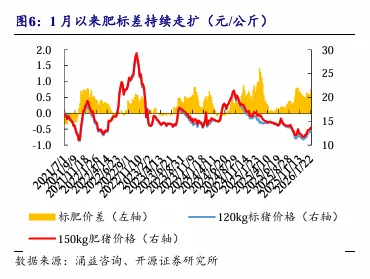 另一方面,持续高位的出栏均重,直接意味着猪肉供应总量的增加。即便出栏头数不变,更重的猪只也意味着更多的肉量投入市场。开源证券指出,当前肥猪与标猪的价差仍在走扩,达0.74元/公斤,表明市场对大猪的需求依然存在,这也反过来鼓励了养殖端的压栏增重行为。
