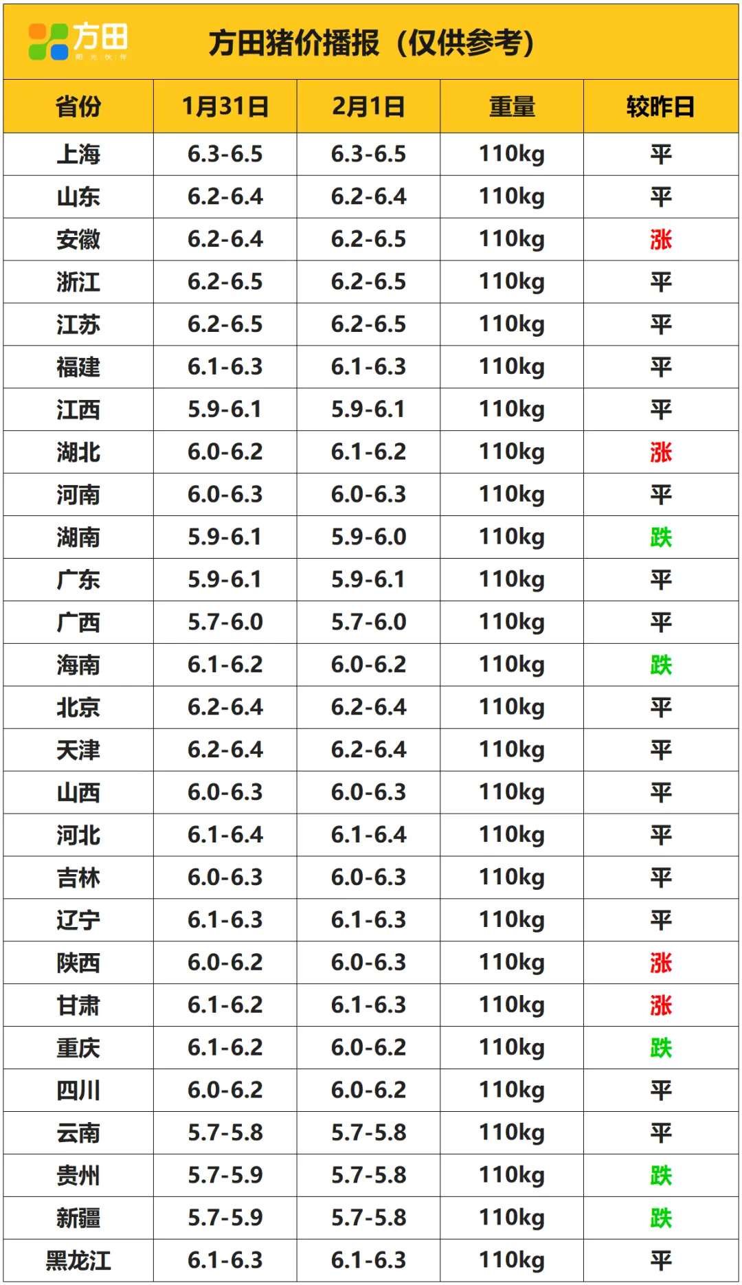 猪价丨2月1日 明日猪价早知道 养羊网 2026-01-31 猪价丨2月1日 明日猪价早知道 养羊网 2026-01-31 上一篇:【明日猪价】 2026.2.1 多地上涨 下一篇:【猪价早讯】 2026. 2.1猪价!(欢迎转发) 您可能还会对下面的文章感兴趣111: 相关文章 周末带宝宝去农场rua小兔兔啦 2025年4月13日全国各地生猪价格信息 新入的拉登们 2025年4月13日全国各地生猪价格信息