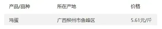 广西部分地区鸡蛋价格