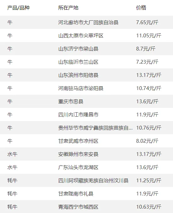 牛、羊等价格参考报价