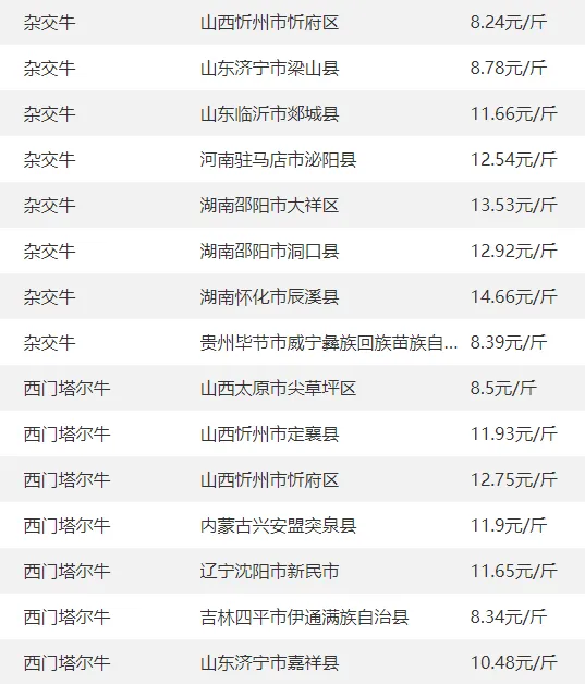 全国部分地区牛价