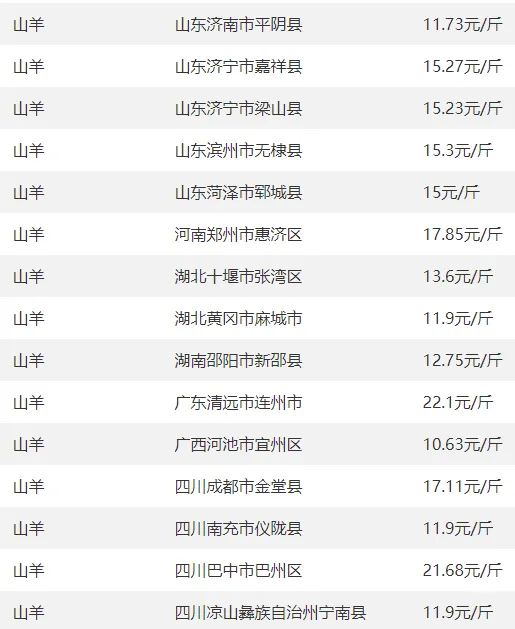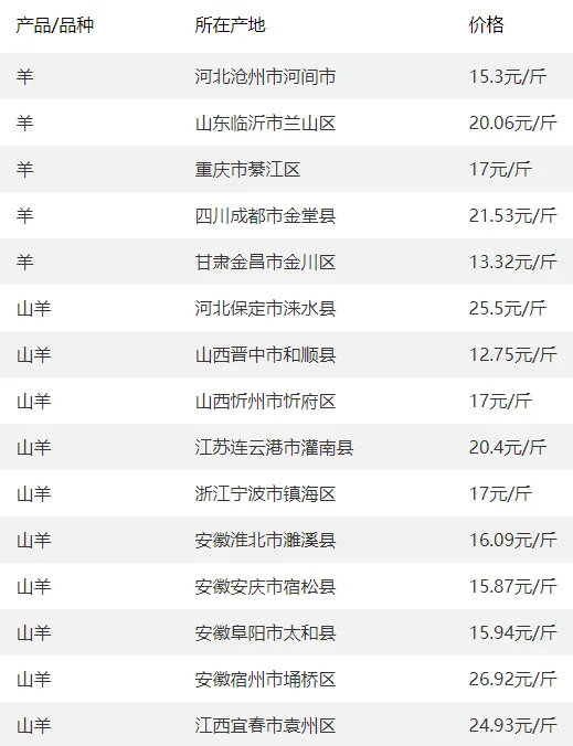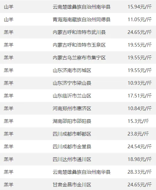 全国部分地区羊价