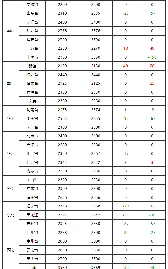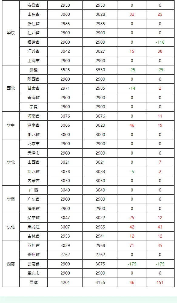 区域方面,报价差异明显:河北、江苏、四川等地报价上涨,其中河北涨幅达28元/吨,江苏涨幅57元/吨;河南、山东、新疆等地小幅下跌,河南跌27元/吨,山东跌14元/吨,甘肃跌幅最大,达51元/吨;北京、天津、广东等地报价维持2900元/吨左右低位。