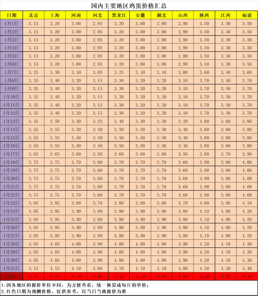 ? ? 鸡蛋预测价格仅供参考,实际价格以当地当日的报价为准。