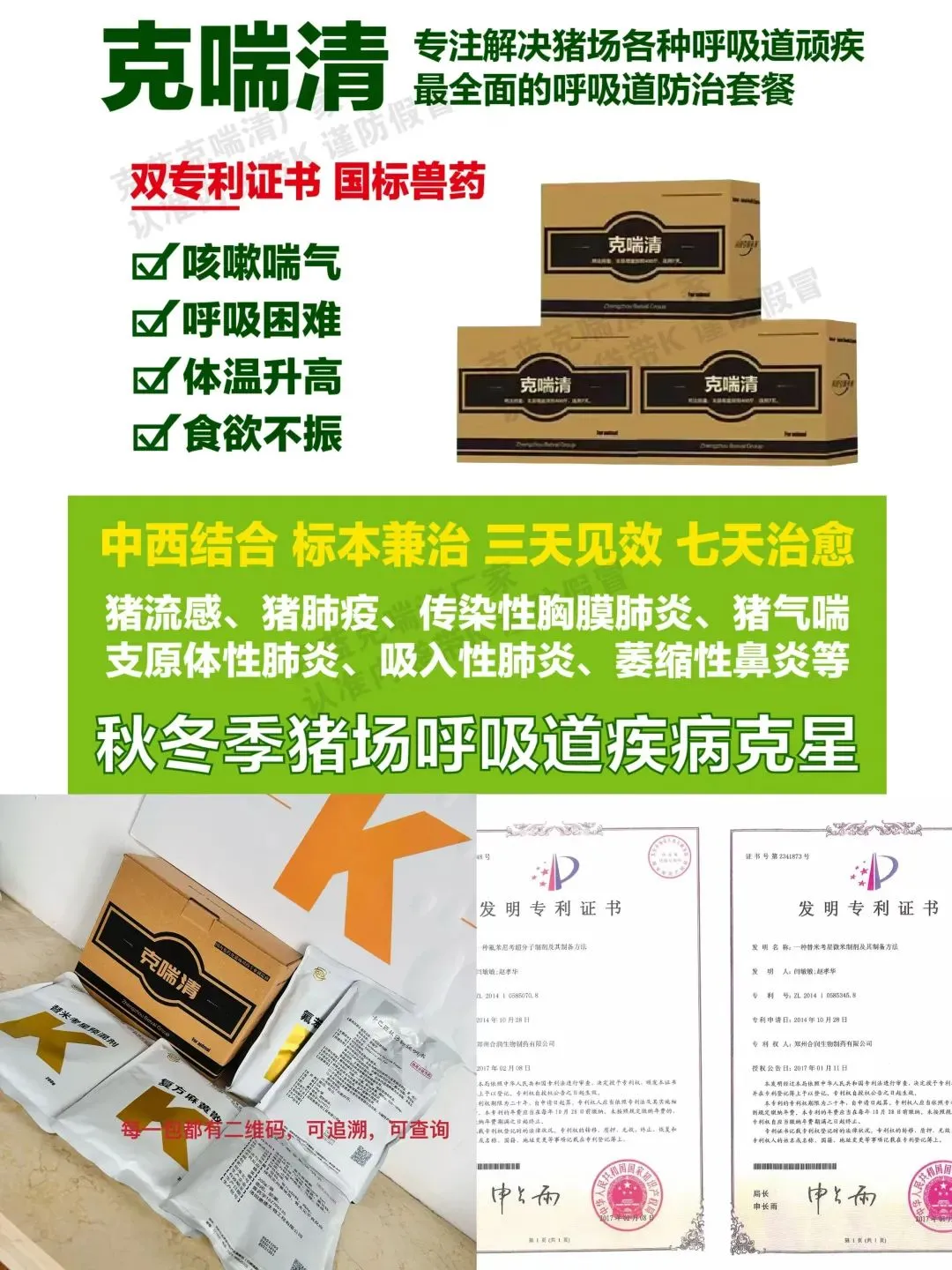? ? ? ?还有买一送一单品秒杀:三效脱霉净/板青颗粒/麻杏石甘颗粒/猪优状/生乳散/多维/过硫酸氢钾消毒粉/多西环素/支原净套餐