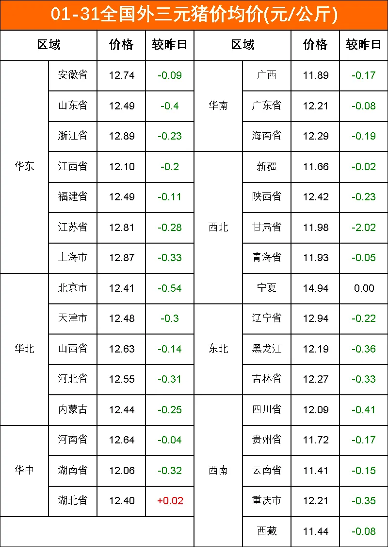 今日猪价:2026-01-31