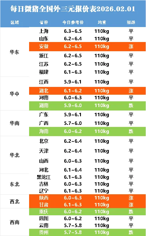 明日最新猪价2026.02.01点击蓝字关注 猪价不错过