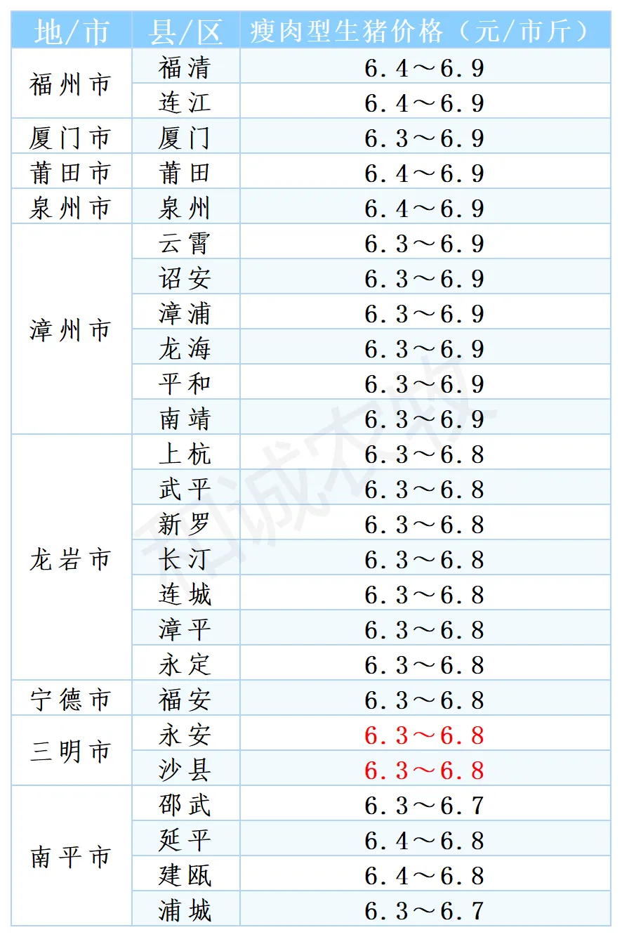 【猪价】2026.02.01福建各地区每日最新猪价点击上方"蓝字" 关注我们吧! 温馨提示 红色数字表示与昨日相比增长 2026.02.01 转载请注明出处!