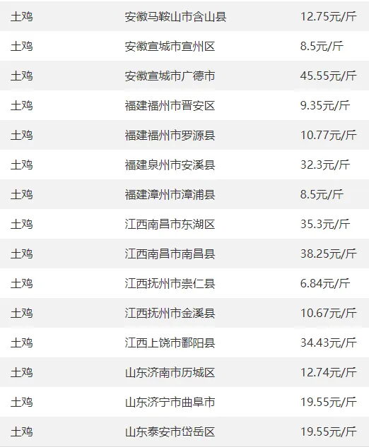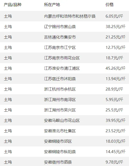 肉鸡、土鸡、鸡苗、鸡蛋等今日报价