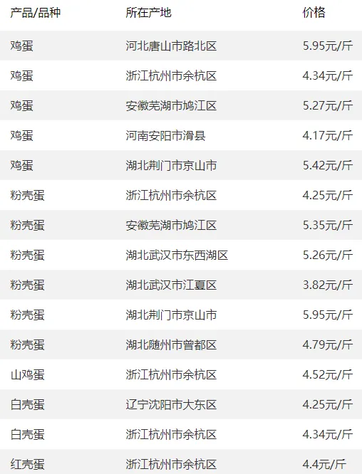 现货市场上,全国农产品批发市场鸡蛋平均价格约4.29元/斤,主产区到户价集中在3.8-4.2元/斤,主销区批发价4.0-4.5元/斤。山东、河南、河北等主产区跌幅突出,普遍下调0.05-0.15元/斤,山东菏泽大蛋到户价120-121元/30斤,河北沧州大蛋160元/40斤;北京、上海等主销区价格持平,北京主流批发价186元/44斤,上海浦东褐壳蛋接货价117元/27.5斤。