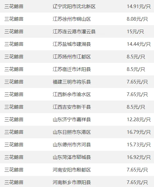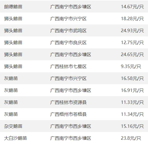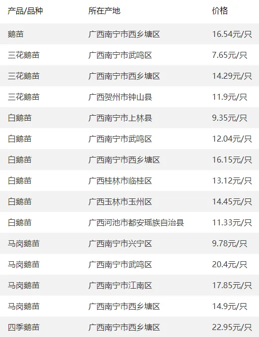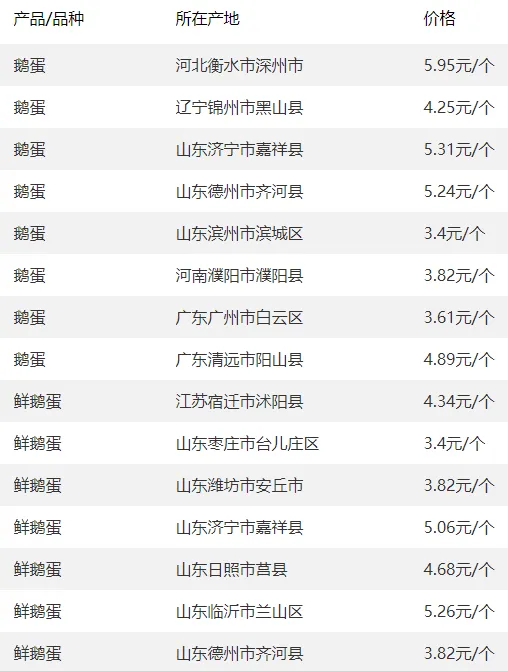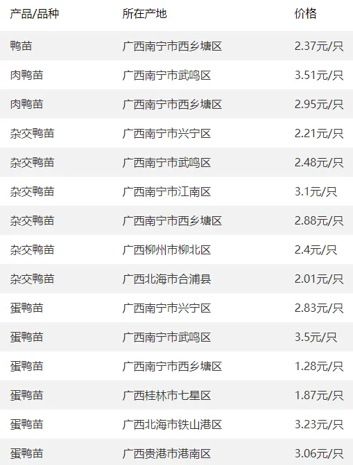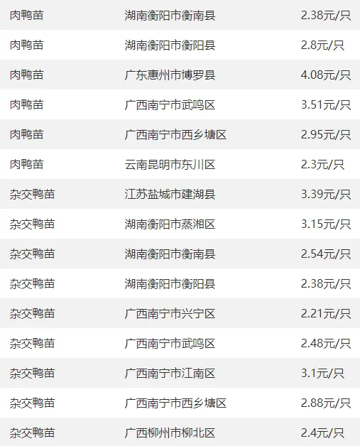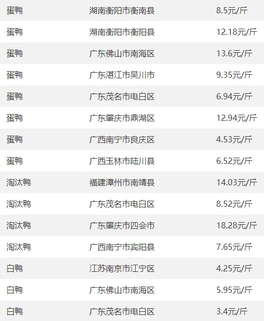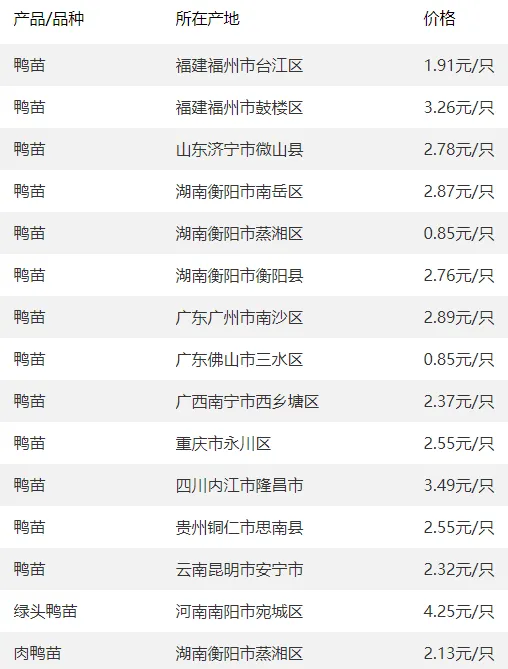 活鸭、鸭苗、鸭蛋、鹅苗等今日报价参考