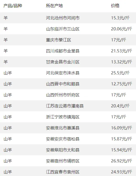 2. 羊肉市场局部飘红,河南山羊价涨0.3元/斤,驻马店优质山羊报价15.5-17.0元/斤。