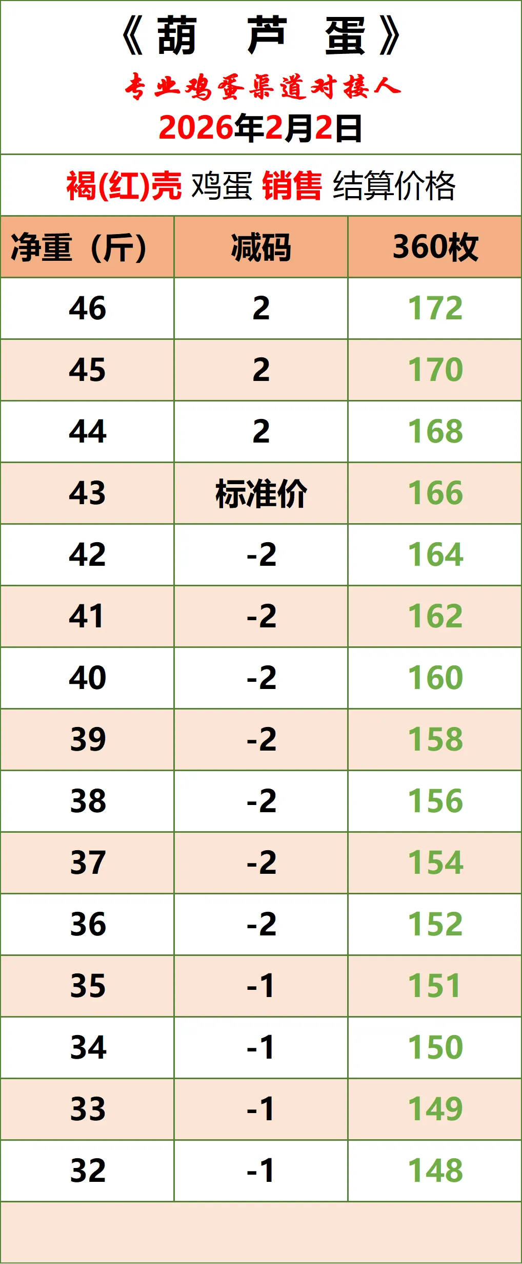 2026年2月2日《葫芦蛋》鸡蛋价格