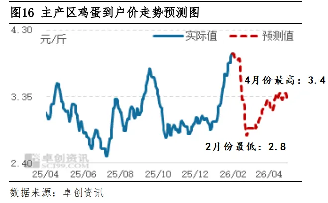 2月份市场需求将逐步减弱,蛋价整体以下行为主, 但上旬仍有内销需求支撑,蛋价或缓慢下跌,中旬蛋价以后下跌速度加快,预计春节过后蛋价低点或降至2.80元/斤左右。