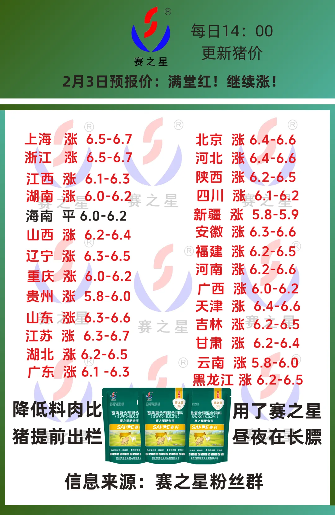 【猪价早讯】 2026. 2.2猪价!全面上涨!(欢迎转发)