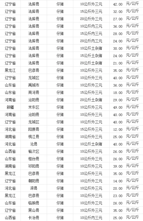 区域来看,湖北宜城、河南泌阳报价领跑,10公斤外三元仔猪最高达45元/公斤、40元/公斤;辽宁朝阳县报价偏低,10公斤外三元仔猪仅14元/公斤。山东、河北、江苏等主产区报价平稳,散户与大厂报价略有差距,其中山东临朐县10公斤外三元仔猪报价26-30元/公斤。