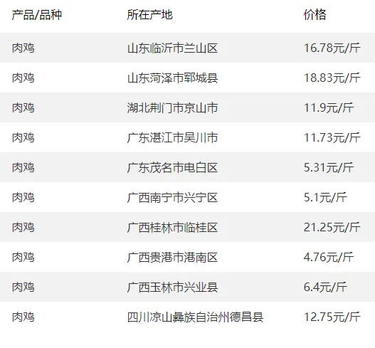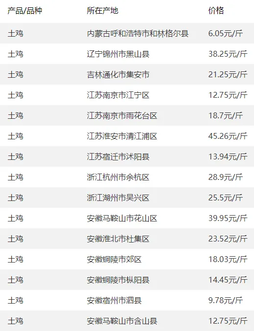 肉鸡、土鸡、鸡苗、鸡蛋等今日报价