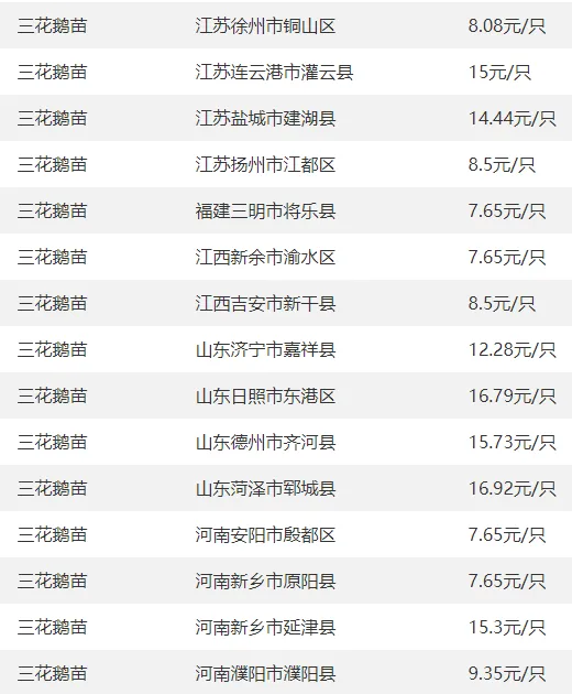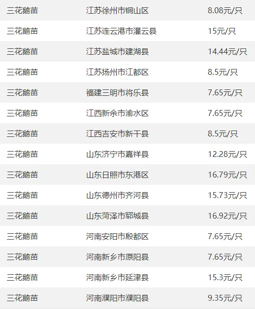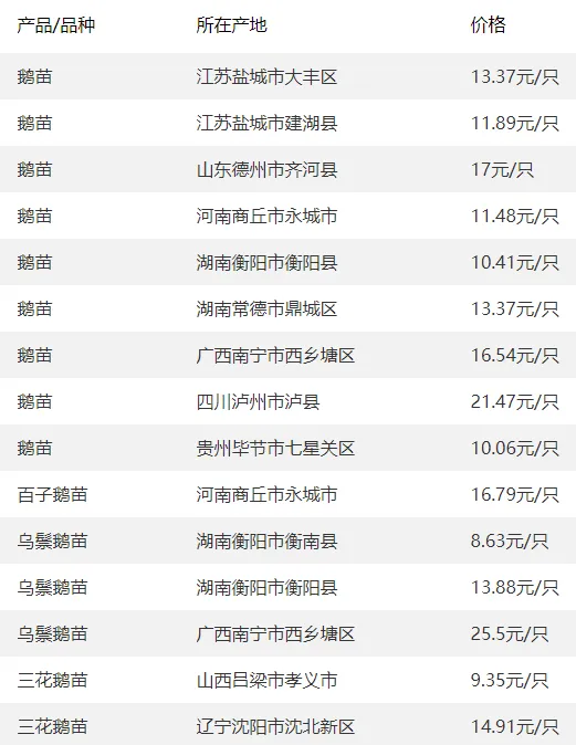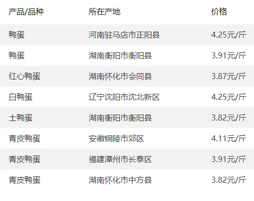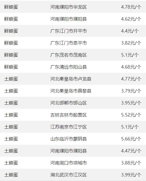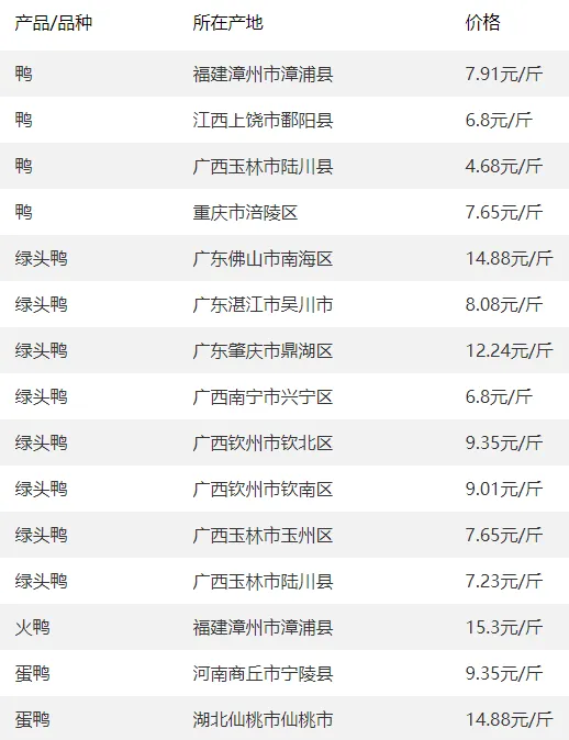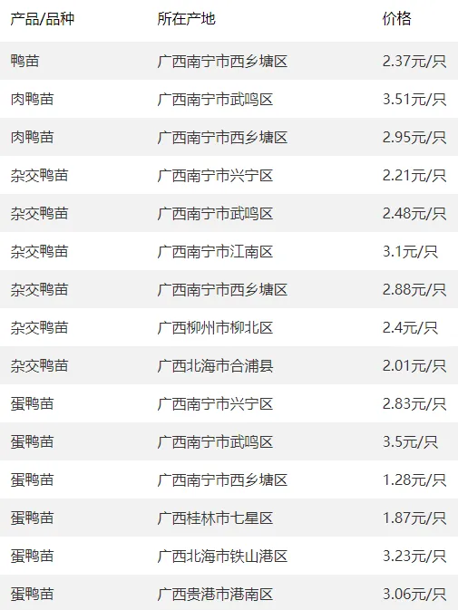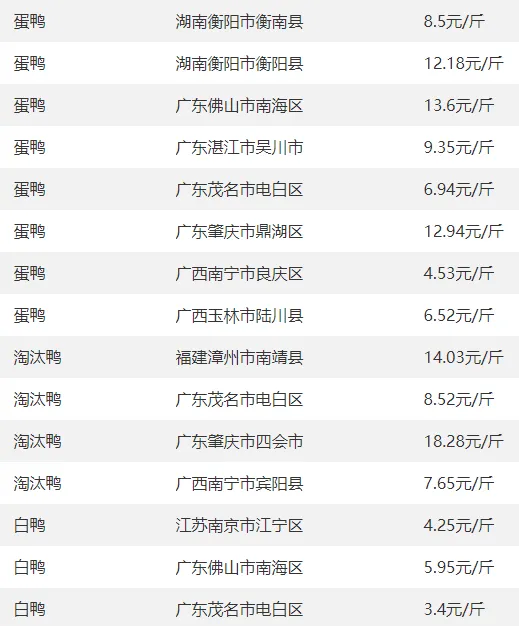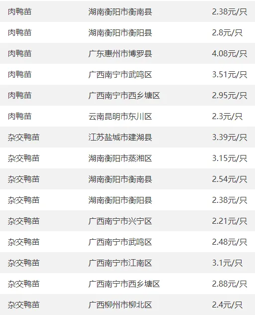 活鸭、鸭苗、鸭蛋、鹅苗等今日报价参考