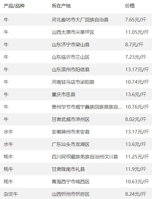 2. 新疆活牛价格相对偏低,当日报价12.5-13.3元/斤,较其他主产区低0.7-2.8元/斤。