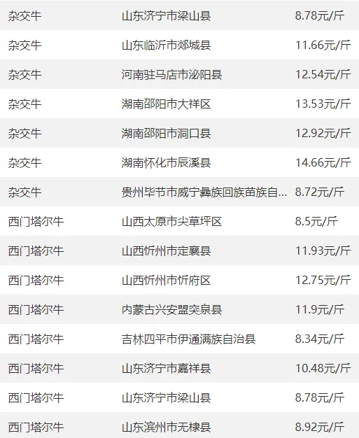 3. 犊牛价格延续涨势,300-400斤小公牛报价19-23元/斤,部分地区单头涨幅300-500元。